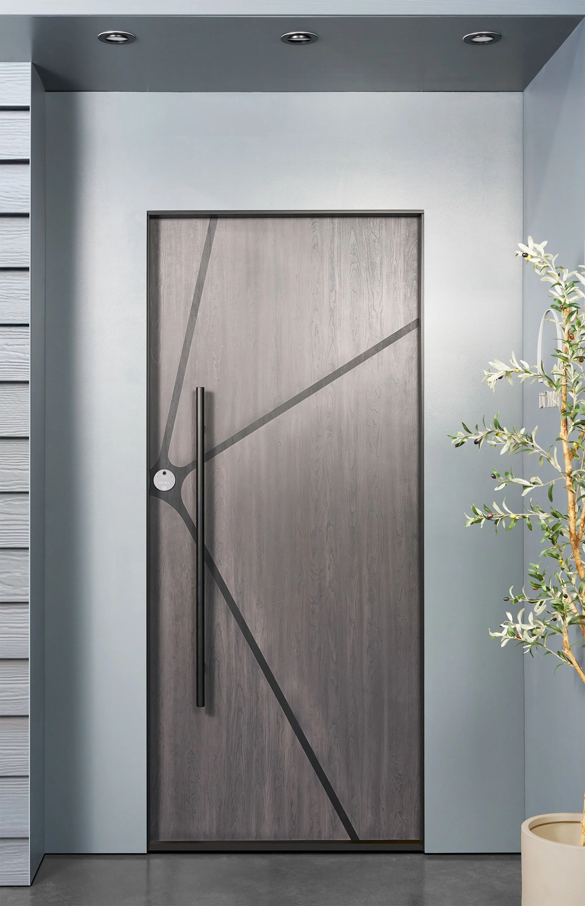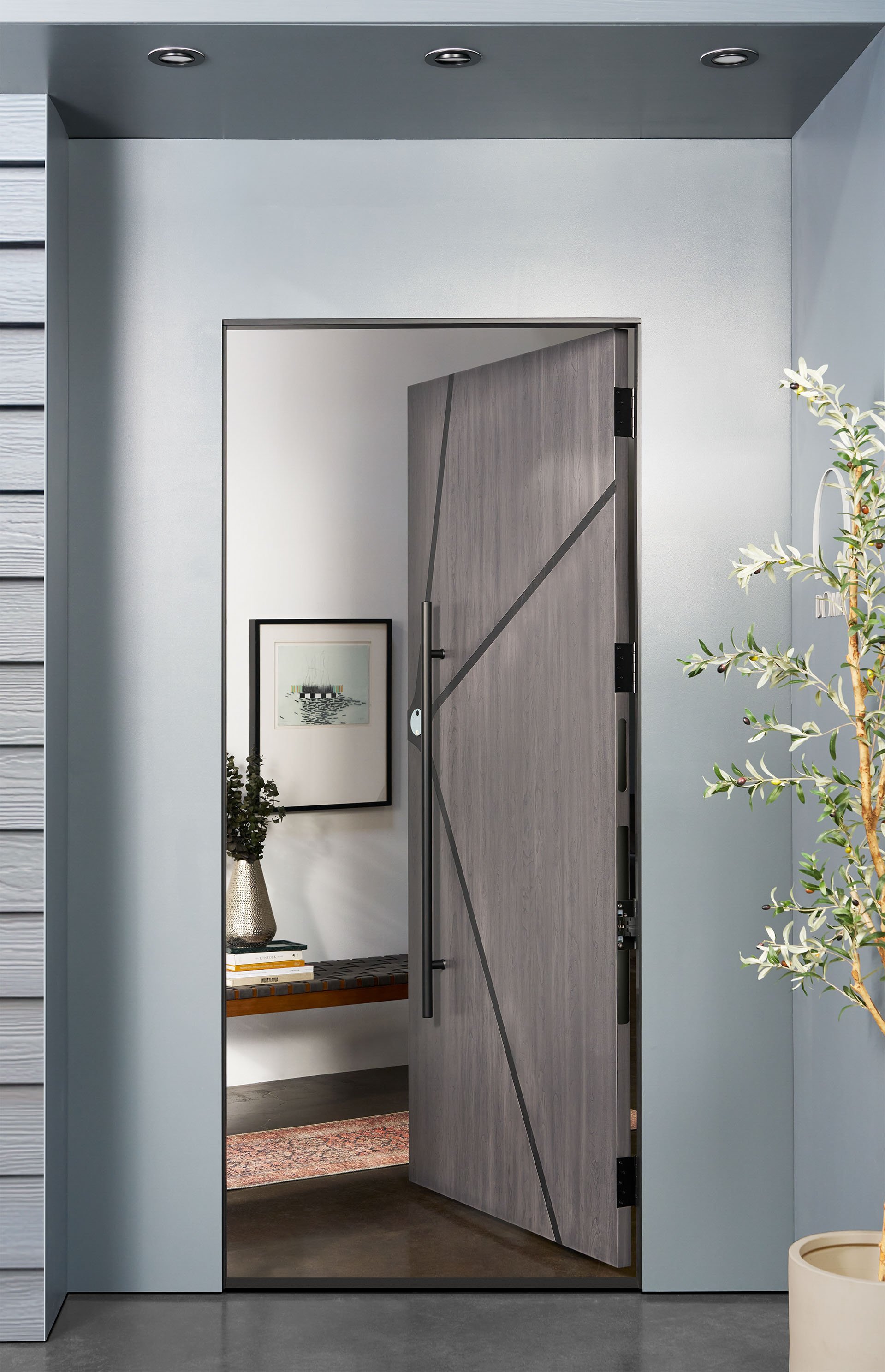 The doors were installed at the design studios for a press event, so we worked with a prop stylist to add thoughtful decor and create a space that felt more like a modern home. This helped place the product in a realistic home environment while still maintaining a clean, modern aesthetic.