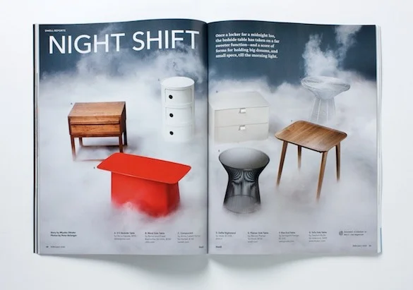 No matter how long I spend on an image it's always a thrill to see it in the final layout. The images I shot with the dry ice a few months ago (http://www.peterbelanger.com/posts/42-dry-ice) were just published in Dwell Magazine. Something about seeing the photo with the final text layered on it, in print, is so satisfying.