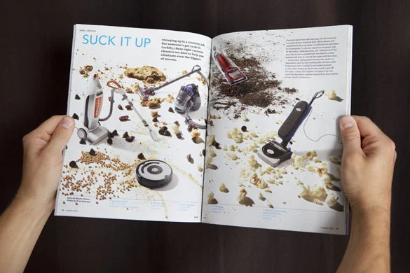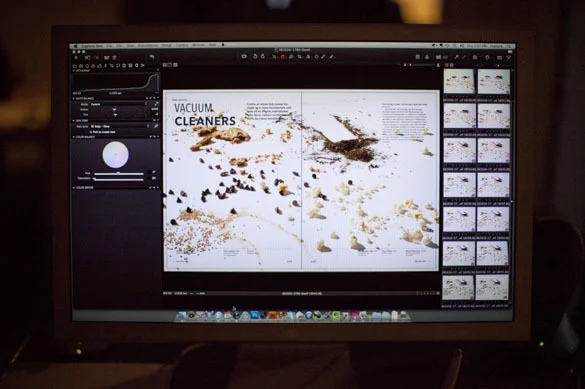 We had an amazing two days with Dwell Magazine. This time, we got creative with vacuums. They all sucked! The process started off by using a rough overlay of the spread from Brendan, the art director. This allowed us to map out where the crumbs an...