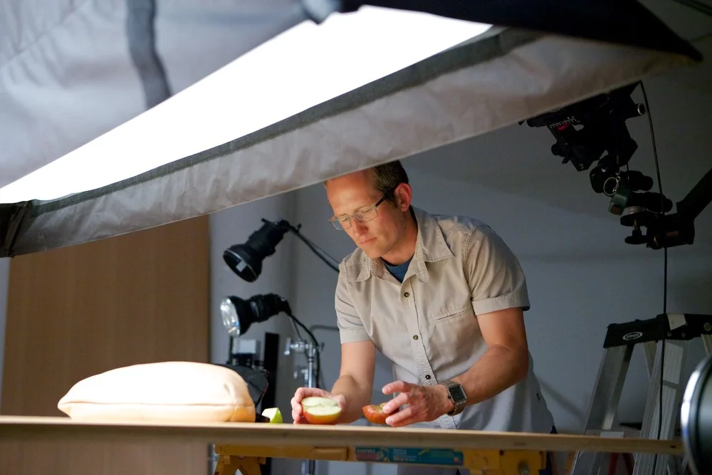 When I photograph the still version I use still equipment. I could change to the 5D Mark III and hot lights, but that would double my work and change the look of the photo. The work flow that I found that works well is to use stop motion or a layered photo. With stop motion the art director, Rob, and I plan out the best way to use motion that ends at a still image for print. I use Apple's Motion program to combine all the stills into a video for the iPad version.